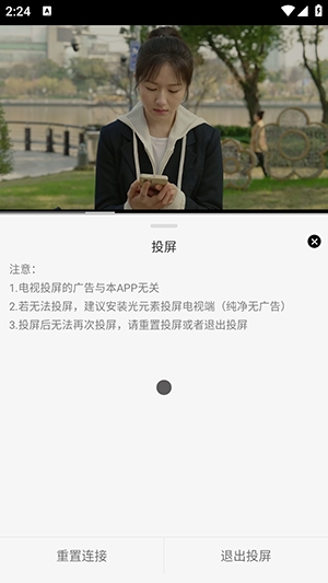 4、点击播放页面右上角的 TV图标,即可搜索并连接投屏设备,享受大屏观影的乐趣。