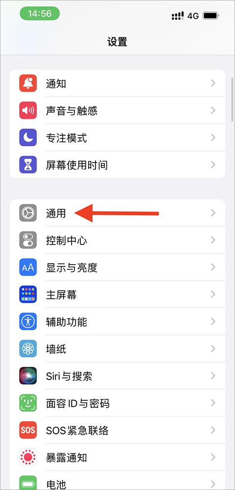 1、打开苹果手机中的设置页面,在该页面中点击【通用】
