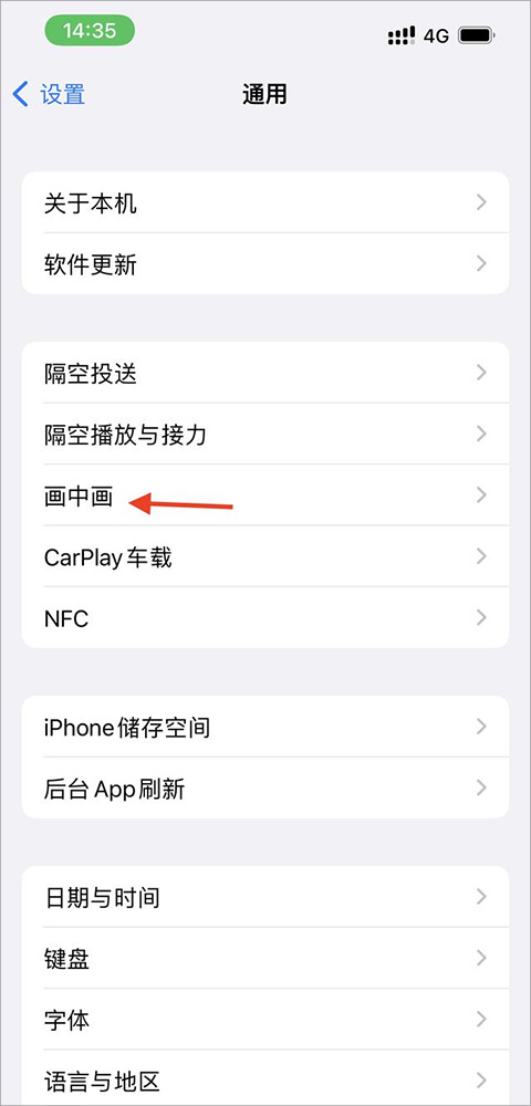 2、接着在打开的通用页面中点击【画中画】