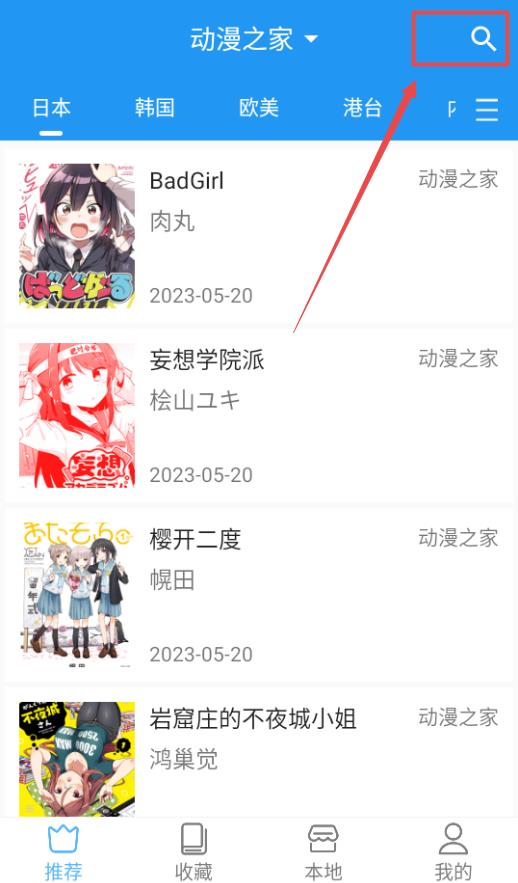 直接打开芝士漫画之后,导入书源,就会跳转到主页,在主页上面点击搜索框,如下图所示: