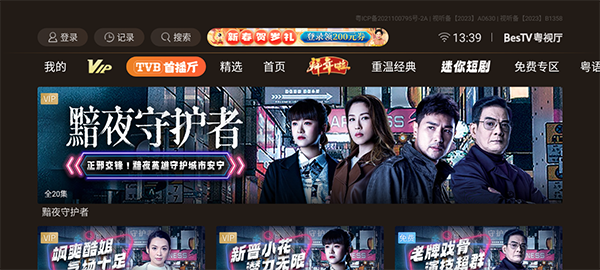 该应用目前不支持电视直播观看,但是用户可以观看看tvb最新热播港剧,用户可以在本站免费下载应用的apk安装包到手机或u盘上,然后就可以将u盘或手机与电视连接后快捷地安装在电视上。然后使用微信扫码登录后即可在应用的tvb首播厅中选择最新热门港剧进行放映