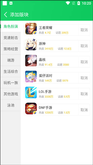 2.右划进入社区,这里进行了分类,用户能够更方便的进行选择;
