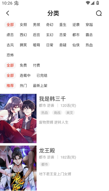 5、为用户提供超多的漫画,通过分类可以快速找到感兴趣的内容,用户在软件上看漫画不花钱。