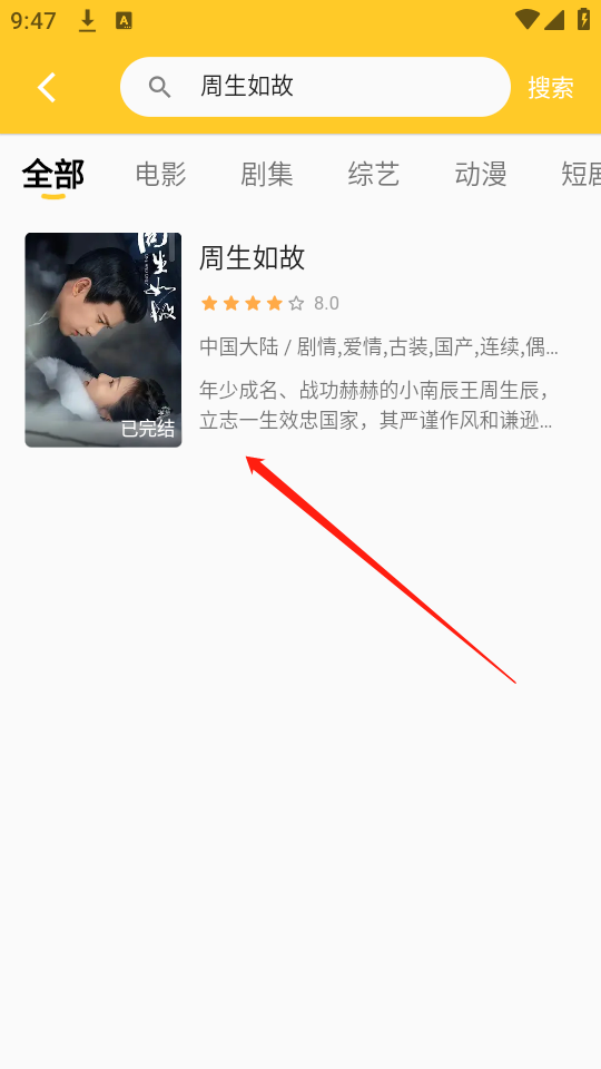 1、打开在本站下载安装的繁星影视app后,找到一部自己喜欢的影视。