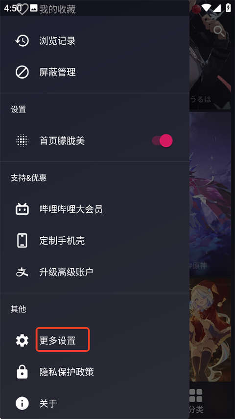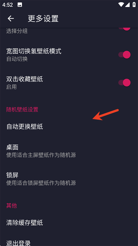 2、下滑找到“更多设置”,进入“随机壁纸设置”。