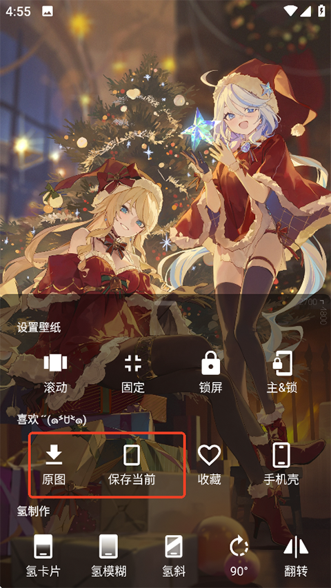 1、打开软件,点击任一壁纸,在壁纸查看界面点击屏幕任意位置唤出菜单。在菜单中点击保存,这里有两种方式可以随意选择。