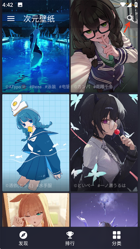 2、然后我们就可以在主页面浏览并点击喜欢的壁纸,还可以点击放大镜来搜索。