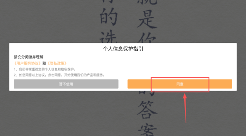1、在应用中点击"同意"个人信息指引,进入功能选择界面。