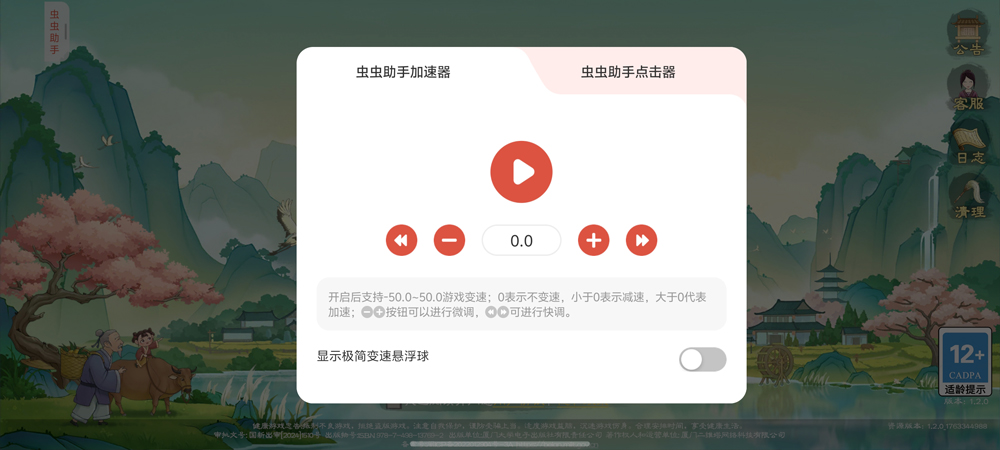 1、首先打开一个支持加速的游戏,进入后点击左侧虫虫助手的悬浮窗图标。