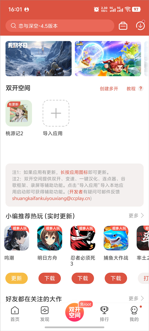1、打开虫虫助手,点击下方【双开空间】图标。