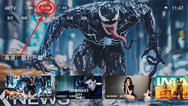 2、进入首页点击“直播”进入到直播界面。