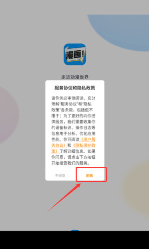 1、点击红色箭头指向的同意按钮,进入应用。