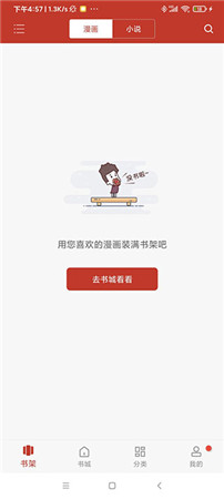 1、下载68漫画手机版后打开,首页是书架,在这能够保存想看的漫画和小说;