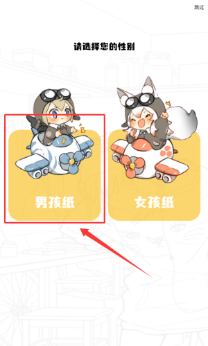 2、在性别选择界面,点击被框选的男孩纸选项。