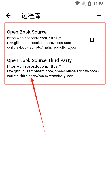 进入以后,下面的书源列表中,点击后面的下载按钮;