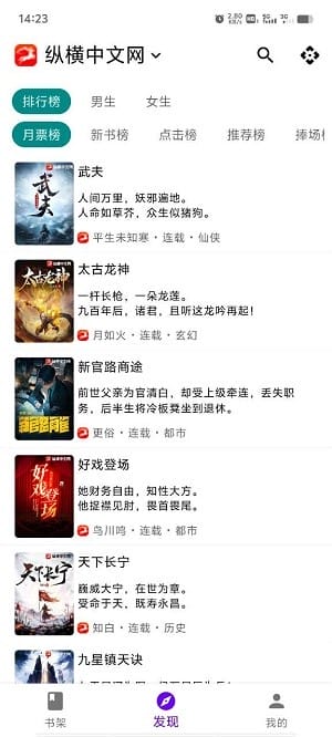 最后重新打开软件,“发现”界面就可以看到小说了。