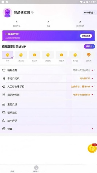 4、个人中心支持vip会员开通,同时提供福利任务指引及幸运口红机玩法说明。
