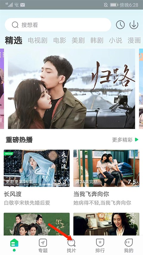 1、打开蜂鸟追剧应用,进入主界面后,点击底部导航栏中的【找片】选项;