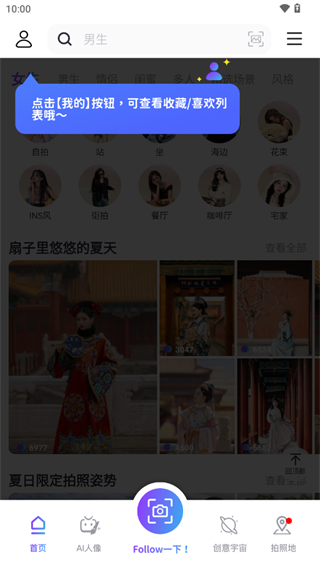 1、下载并安装Follow相机官方版后,打开应用,点击底部导航栏的“Follow一下!”。