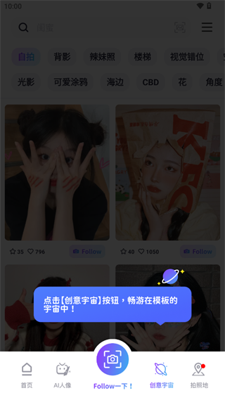 6、点击“创意宇宙”按钮,探索丰富多样的拍照模板库,发现更多创意可能。