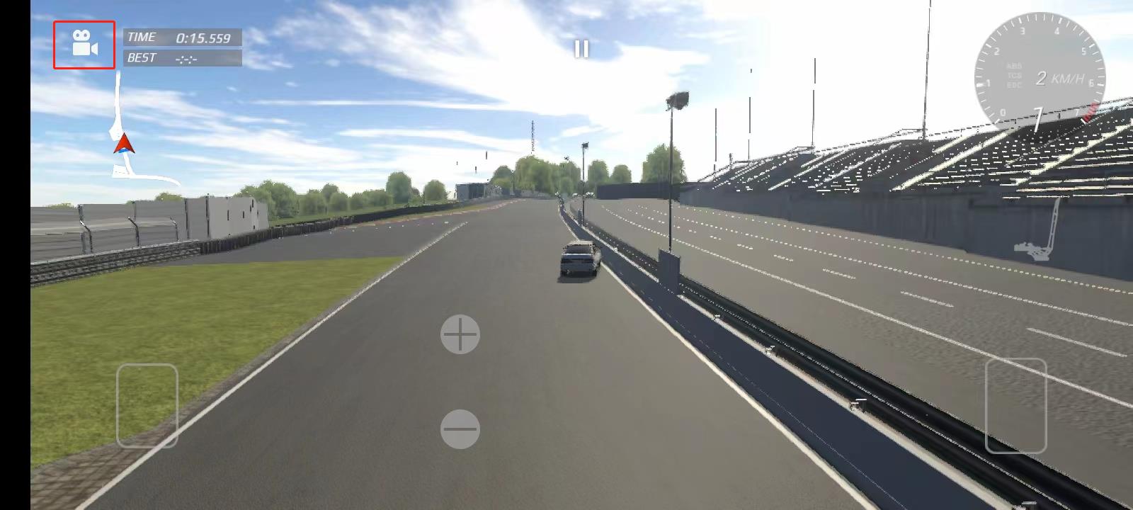 6、游戏默认采用重力感应操控:左侧按钮为刹车,右侧为油门,车身转向则通过倾斜手机实现,所有控制方式均可在设置中自定义调整;