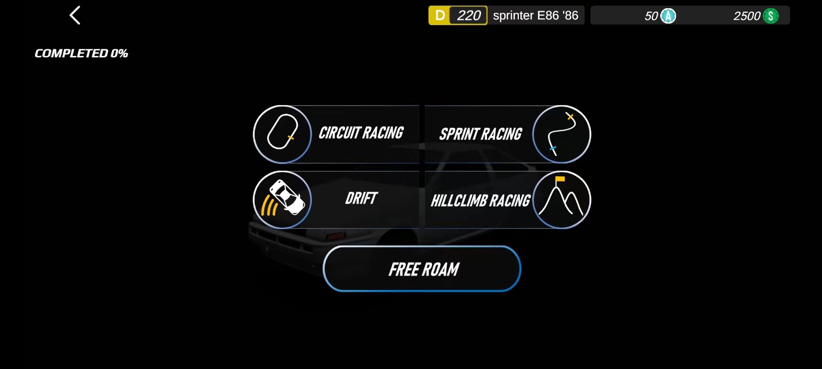 3、游戏内共提供四种核心玩法模式:赛车竞速、短程冲刺、漂移挑战与爬坡赛事,可根据兴趣自由选择;