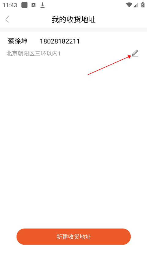 2. 若需修改已有地址,请点击对应地址右侧的画笔按钮;若尚未添加地址,可点击页面底部的“新建收货地址”进行添加。