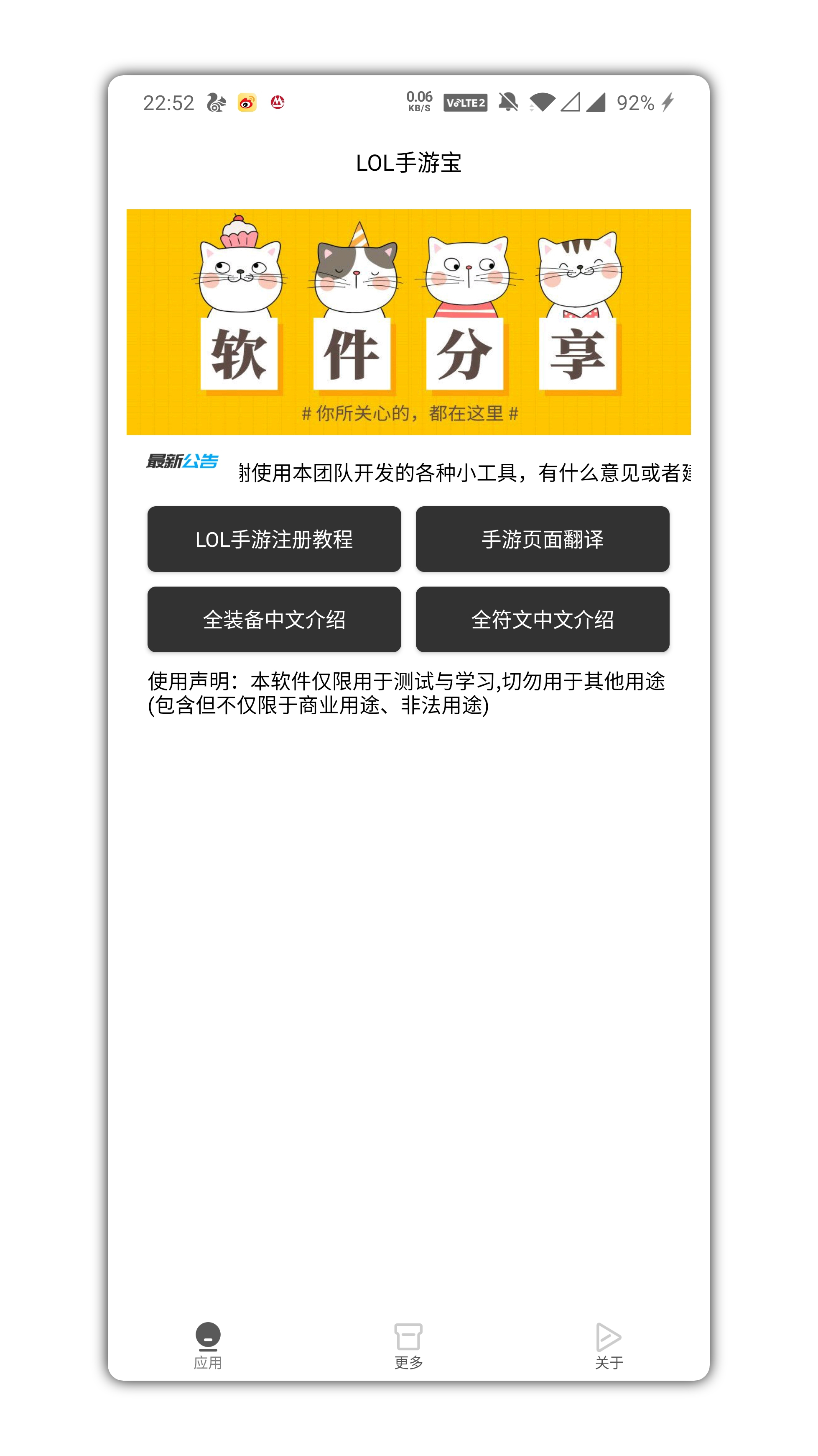 LOL手游宝是一款十分实用的为英雄联盟手游打造的手游助手,LOL手游宝不管是lol手游的下载教程和游戏设置、装备全中文介绍、符文中文版介绍等功能,这里有明确的说明,所有英雄的使用方式也可以在这里找到,每一次的对决都可以进行正确的分析,喜欢的用户快下载LOL手游宝吧!