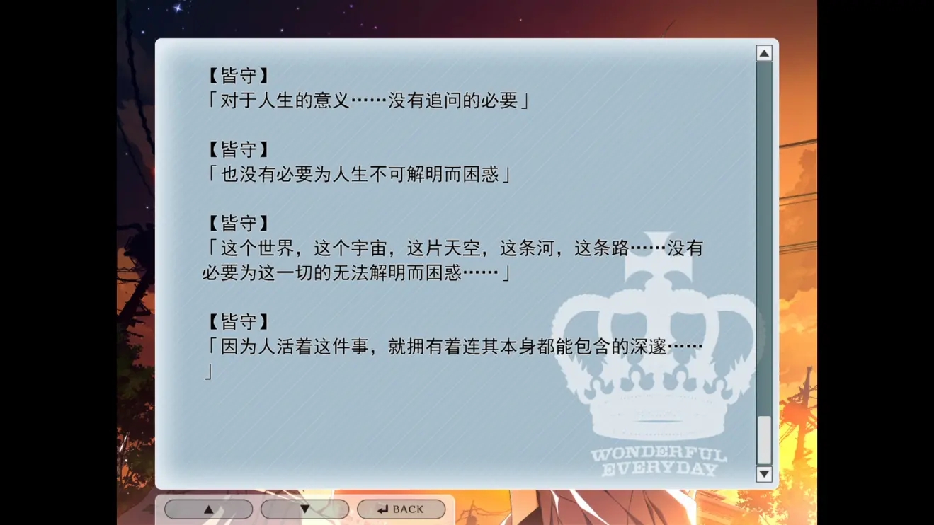 想要传达的,仅仅只有一件将瞬间保存下来的永远。---『幸福前方的物语』『如果那是虚无的话那虚无这种东西就是如此,某种程度上一切都是共通着的』(世界只是我眼里的世界,在每个人眼里也有不同的的世界)