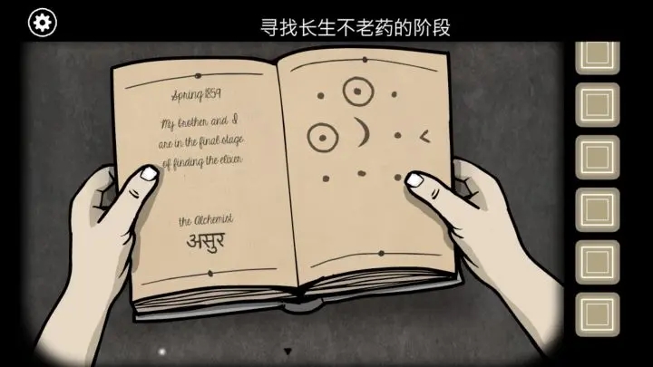 James看炼金术笔记本,发现上面写:“1859年春,我和我哥哥在寻找长生不老药的最后一个阶段。”