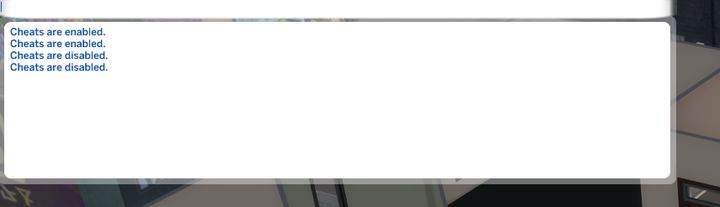 testingcheats false → Cheats are disabled 作弊禁用