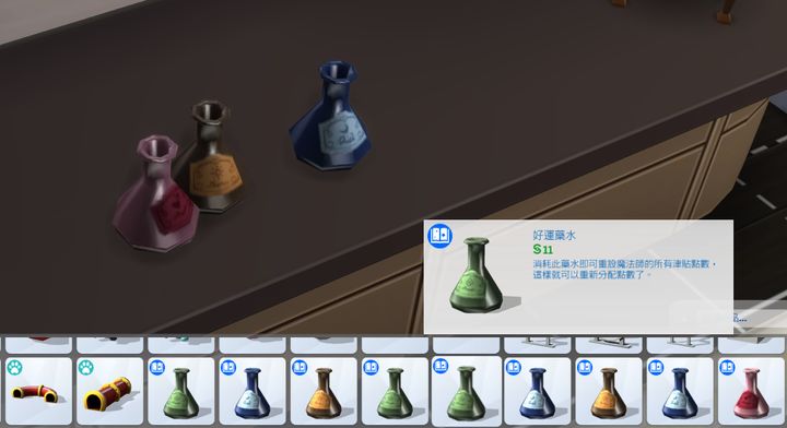 例如这一排魔法药水,开了秘籍之后就可以看到了,并且可以摆放在世界中~