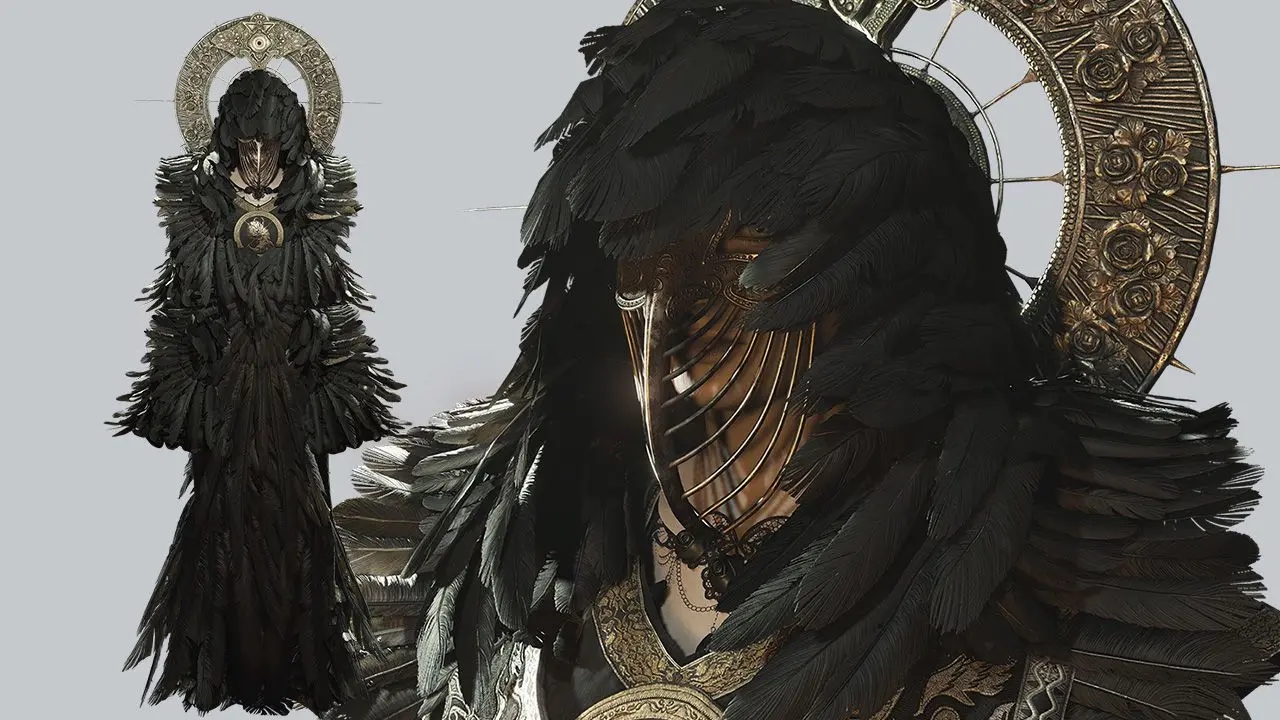 下图则是本作反派们的“全家福”:母神米兰达和四大贵族。站在正中央,身后长有黑色翅膀的神秘女人就是村庄的统治者——母神米兰达。村民们虔诚地信奉着她,可她却因为某种原因不再庇佑这个村子。