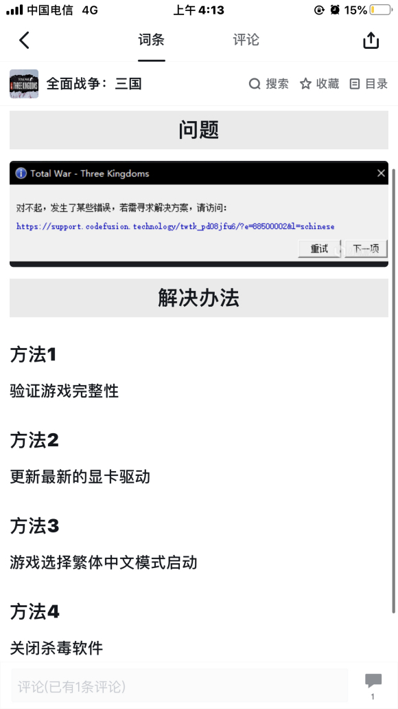 补一个ca官方给的一般无法进入游戏解决方案:请删除%appdata%\Roaming\The Creative Assembly\ThreeKingdoms下除了save_games,save_games_multiplayer以及replays以外的所有文件, 验证游戏完整性,再次尝试。