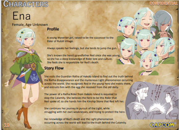 女主背景介绍:龙人族女孩ena,曾拜访过主角的村庄,并见到了red和守护者火龙,多年后,女主为了调查火龙消失之谜,以及世界上未知光芒的出现之谜,再次到访,并见到了red口中提到的,命中注定会结束灾厄的主角,并将red留下的一代中进行战斗的stone交给了主角,她知道red之死的真相,一路上帮助主角,目的就是为了解开世界灾厄背后的真相。