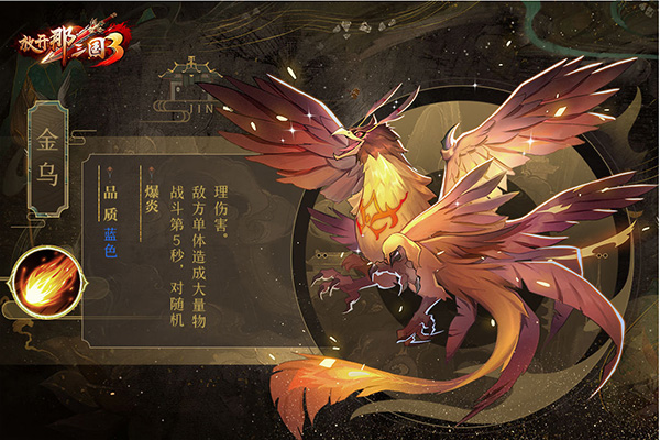 技能简评:金乌是大多数少主们获得的第一个神兽,触发较快,前期可以用来补充队伍输出。