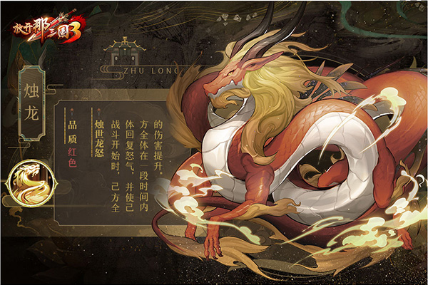 技能简评:烛龙会在开局时为我方全体加怒,开场阶段的伤害提升也能够使我方能够更快积攒怒气、触发大招。