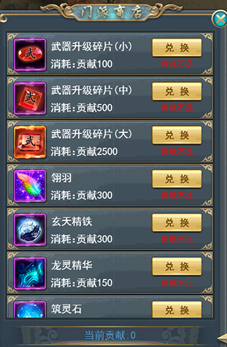 2、可以在门派商店内兑换系统升级材料。尤其是武器升级材料,在云巅内是非常难获得的材料。
