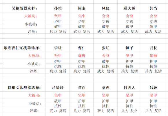 战器的选择也不是一成不变的,根据对手,阵容,会有适当的调整。比如怕射手如飞将黄忠甘宁可以用谨慎。