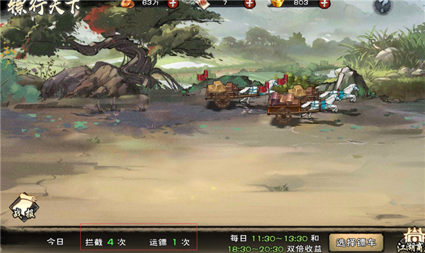 接下来说说劫镖,所谓有押镖就有劫镖,劫镖一样可以获取铜钱与江湖币,但别劫镖的人就会损失资源