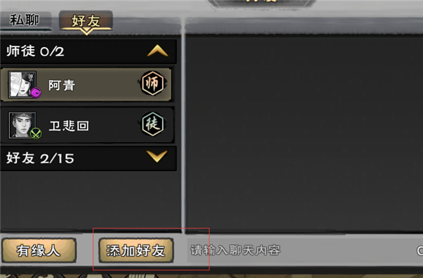 以上就是添加好友的方法了,在交友系统中还可以与好友聊天,没事还可以与好友切磋一番,来一番江湖论剑,一起成长,希望少侠们能和好友们一起愉快的玩耍哦