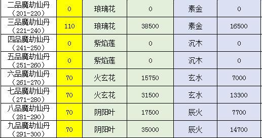 魔劫丹二品三品各要140颗,四品~七品魔劫仙丹各70颗搞定(我坚信鬼佬会送30颗)