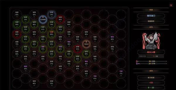 举个例子,打架,你得装备武学,而总共有四大类的武学,也就是技能,技能通过学习啊,或者奇遇,等等获得,然后技能书需要你耗费时间来钻研,如果你的“耐心值”不够,就学不完,而技能书又有耐久度。。。(书会碎的,好吧。。。)在学习过程中你需要一定的策略,是略过当前章节,还是温故而知新,每个选项都需要你做出判断。学习技能书会加强技能的心法等级,想要提升实力,就得修炼武学,而武学到了一定程度后,无法继续修炼,需要突破,突破就向下图一样,得从起点穴位找到合适的路走到终点穴位(有种伪扫雷的感觉),否则就会走火入魔。。。