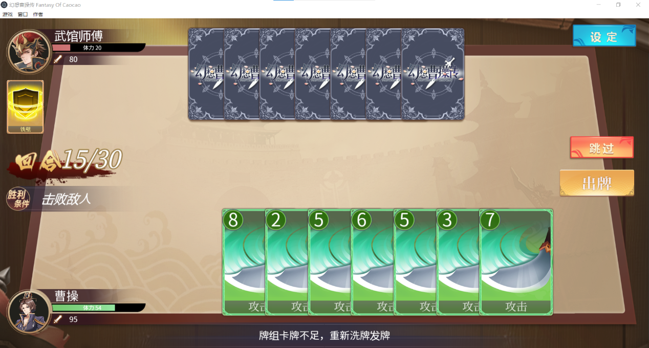 幻想曹操传这个游戏boos敌人所拥有的牌库都是一样的。