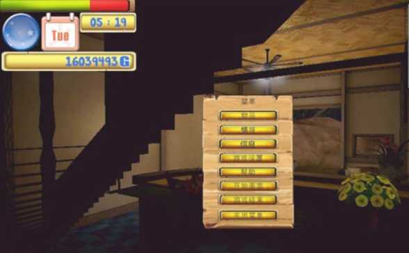游戏一开始别急着去泡妹子,所谓没钱,没人会鸟你,现实世界也的确如此,那么什么正确的方式能让钱迅速到来。唯一的正解就是优先拓宽你的旅馆,然后让客人住满,而且住满也是相对的,客人对房间的好评也影响到你的直接收入。每天早上6点得到收入,而住客对旅馆的好评是你旅馆的清洁度,所以每天早上收好钱后,就立刻花250元清扫才是正道。一开始游戏3000块,直接2000块扩建一房间,然后跑到沙滩上招揽4个客人回来后(男女无所谓)清扫一下,就对着接待处的板凳睡觉吧,别跳楼,毕竟你再没买跳楼保险前,每跳一次是要扣600元的,除非你身无分文。