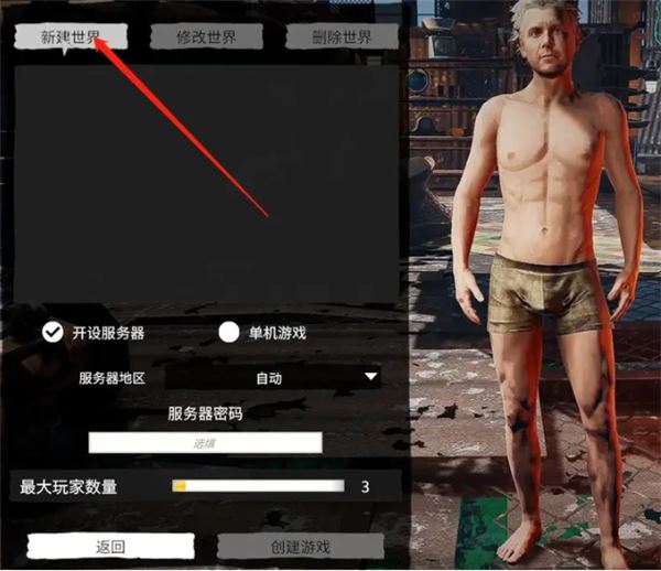 4、创建游戏的玩家,点击新建世界,设定房间;