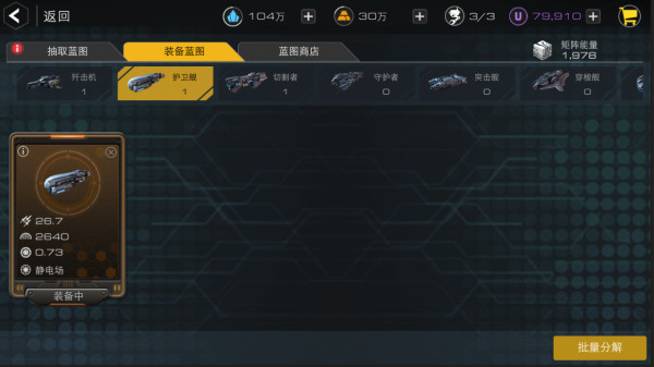 4.获取蓝图可以在科技中心消耗水晶或U币抽取蓝图,选择十连抽可以最大化的节约资源。因为每艘战舰只能装备一张蓝图,如果抽出的蓝图不满意,可以选择出售蓝图,换来的矩阵能量可以在蓝图商店中购买指定战舰指定颜色的蓝图。祝大家欧皇附体,单抽出奇迹。
