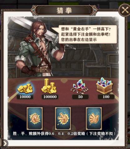 5.猜拳:下注猜拳,买定离手,奖励有金钱和星石,看运气