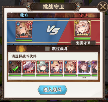 守卫战斗所有战斗均为1V1的单挑战斗,一方生命为0或时间为0时战斗结束,战斗结束后双方维持生命值,生命值为0后无法继续战斗。