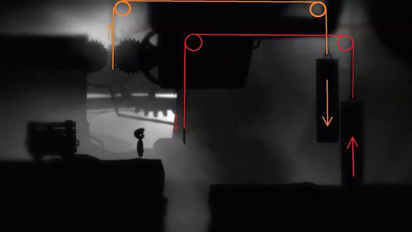 木箱也是游戏的老元素之一了,在极大多数的RPG游戏中都可以找到箱子的身影,无论是用来挡路、垫脚、代替宝箱放置一些价值低的奖励道具等,似乎摧毁木箱比拿来垫脚更有吸引力。虽然LIMBO没有奖励机制,但不代表木箱的摧毁和储藏属性毫无用处,我们依然可以把过关的道具(拉杆、开关)藏在木箱里面,然后引导玩家去摧毁木箱。